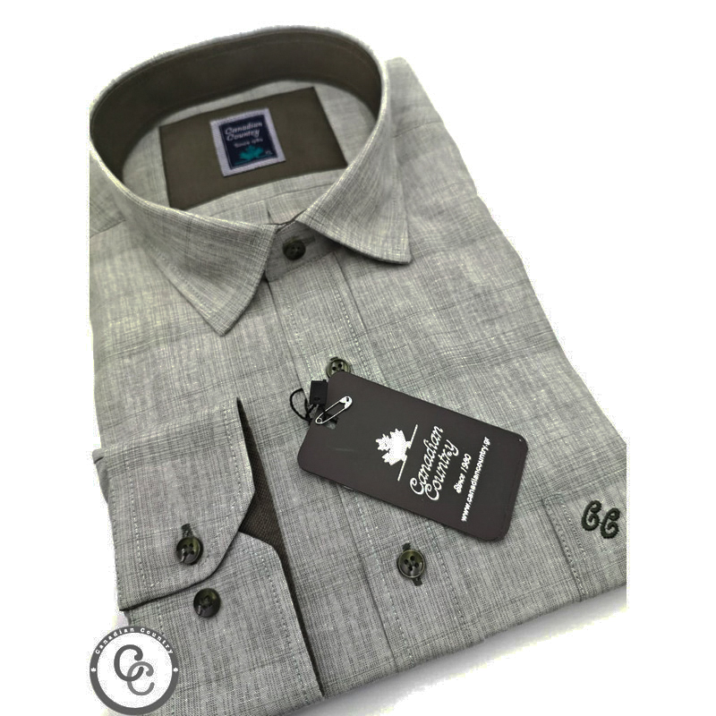 Ανδρικό Πουκάμισο Με Πουα Λεπτομέρειες Γκρι