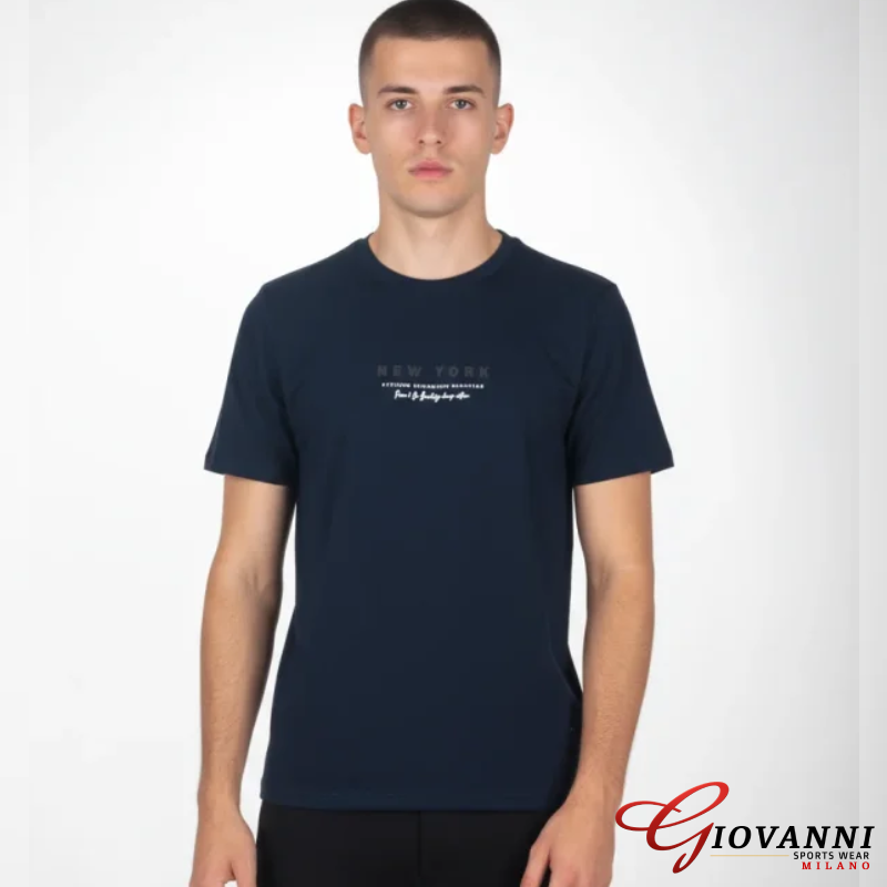 It is a classic crew neck T-shirt in a comfortable fit. Its main feature is the chest print.