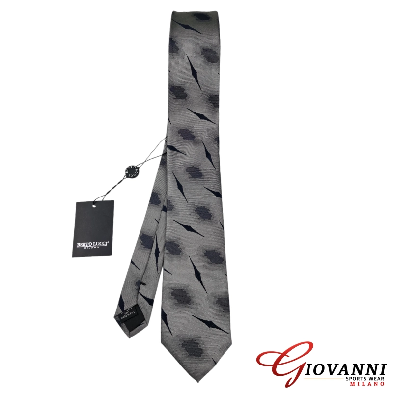 Γραβάτα με μοντέρνο abstract μοτίβο, το οποίο αποτελείται από διάσπαρτα γεωμετρικά σχήματα που θυμίζουν  "ρόμβους" με σβησμένα άκρα.